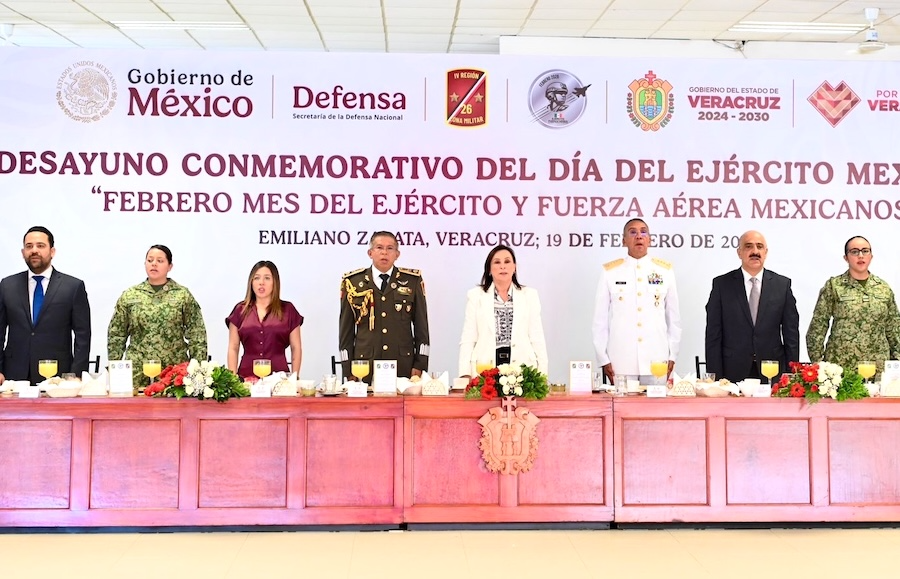 Xalapa, Ver., 19 Febrero 2026.- La gobernadora Rocío Nahle García y el general de Brigada DEM, Miguel Ángel Rodríguez Gutiérrez, presidieron el 113 aniversario de la creación del Ejército Mexicano, en ceremonia que tuvo lugar en las instalaciones de l 26a. Zona Militar de El Lencero, en el municipio de Emiliano Zapata.