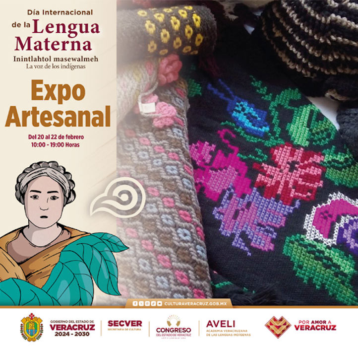 Xalapa, Ver., 20 Febrero 2026.- La Secretaría de Cultura de Veracruz (SECVER) invita al público en general a ser parte de la expo artesanal que se desarrollará del 20 al 22 de febrero en el Museo de Arte del Estado de Veracruz (MAEV), en la ciudad de Orizaba, con motivo de las actividades por el Día Internacional de la Lengua Materna. La entrada es gratuita.