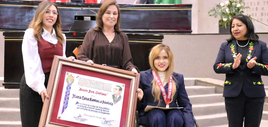 Xalapa, Ver., 25 Febrero 2026.- En reconocimiento a su destacada trayectoria en favor de la inclusión, la accesibilidad y el deporte adaptado, la gobernadora Rocío Nahle García entregó, en representación de los tres Poderes del Estado, la Medalla Adolfo Ruiz Cortines 2025 a la ciudadana María Luisa Bandala Pantoja.