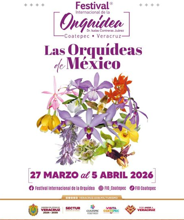 Del 27 de marzo al 5 de abril Xalapa, Ver., 04 Marzo 2026.- La Secretaría de Turismo (Sectur) invita a la XVII edición del Festival Internacional de la Orquídea, que se llevará a cabo del 27 de marzo al 05 de abril en el Salón Texin, en el Pueblo Mágico de Coatepec. Bajo el lema Las Orquídeas de México, esta celebración consolidará al municipio como referente nacional … Continúa leyendo XVII Festival Internacional de la Orquídea en Coatepec: Sectur