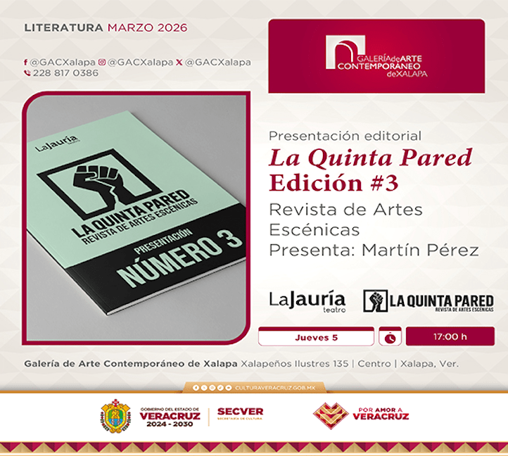 Xalapa, Ver., 04 Marzo 2026.- La Secretaría de Cultura de Veracruz (Secver) invita al público general a las presentaciones editoriales que se llevarán a cabo durante el mes de marzo, en el Auditorio de la Galería de Arte Contemporáneo de Xalapa (GACX). La entrada es libre.  La primera inicia el día jueves 05 de marzo a las 17:00 horas, con el número 3 de la revista … Continúa leyendo Secver presenta 3 libros, en el mes de marzo, en GACX