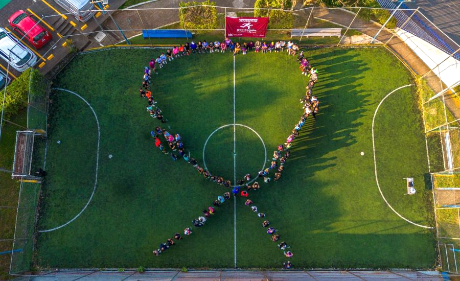 Como distintivo de esta edición, se vistió una prenda color morado, además, la Dirección de Juventud entregó lazos del mismo tono como muestra de solidaridad y sensibilización al movimiento de las mujeres.