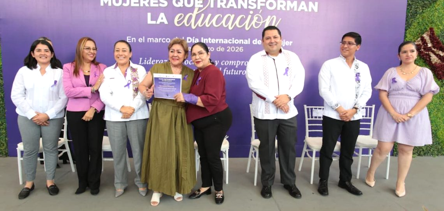 En la explanada de la dependencia, a través de la Coordinación para la Difusión y Optimización de los Servicios Educativos y la Unidad de Género, recibieron el reconocimiento Mujeres que transforman la educación, que distingue el liderazgo, la vocación y el compromiso de las galardonadas.