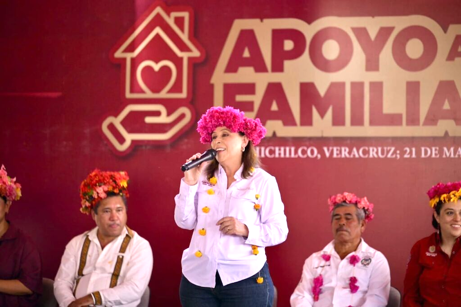 Tlachichilco, Ver., 21 Marzo 2026.- La gobernadora Rocío Nahle García encabezó la entrega de apoyos del programa Apoyo a la Familia en la comunidad El Naranjal, municipio de Tlachichilco, donde anunció la construcción de un puente para cruzar el río Vinazco, la implementación de caminos artesanales y sacacosechas.