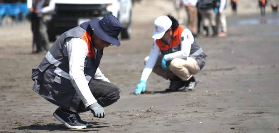 Precisó que se trata de trazas de hidrocarburo presentes en cantidades reducidas, sin acumulaciones mayores, las cuales son retiradas mediante un trabajo minucioso. Las labores se concentran en la zona de rompiente, donde el oleaje deposita los residuos, mismos que son recolectados de forma manual tras un primer barrido municipal.