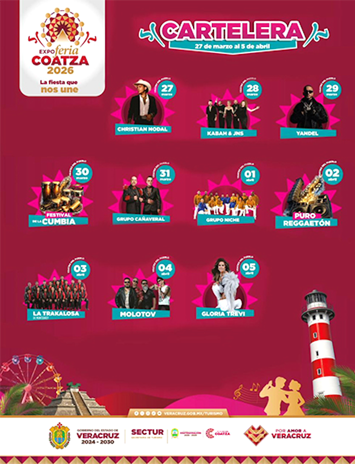 Xalapa, Ver., 27 Marzo 2026.– La Secretaría de Turismo invita a la Expo Feria Coatza 2026, que inicia este 27 de marzo y se llevará a cabo hasta el 05 de abril, como una de las festividades más esperadas del sur del estado, con un programa pensado para el disfrute de toda la familia.