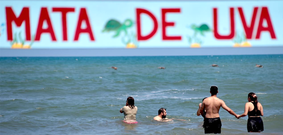 Desde las primeras horas del día se observa la llegada de grupos familiares, que comparten alimentos, practican actividades recreativas como voleibol y disfrutan del mar en un ambiente ordenado y seguro.