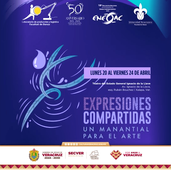 Xalapa, Ver., 17 Abril 2026.- La Secretaría de Cultura de Veracruz (SECVER), en colaboración con la Facultad de Danza de la Universidad Veracruzana, invita al 18.° Encuentro Nacional de Estudiantes de Danza Contemporánea, que se llevará a cabo del 20 al 24 de abril, en el Teatro del Estado General Ignacio de la Llave. El acceso es gratuito con boleto de control.   Será un espacio … Continúa leyendo XVIII Encuentro nacional de danza contemporánea en Xalapa, gratis