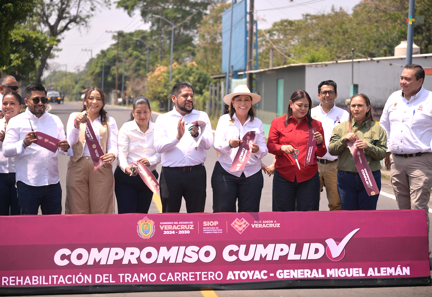 Siguen 7 k hacia Potrero Viejo: Nahle Atoyac, Ver., 25 Abril 2026.- La gobernadora Rocío Nahle García encabezó la entrega de la rehabilitación del tramo carretero Atoyac – General Miguel Alemán – entronque 150D Córdoba, obra que cumple un compromiso con la población y consolida la presencia de la Cuarta Transformación en la región centro del estado. “La palabra se cumple”, afirmó al recordar que, … Continúa leyendo Rehabilitada la carretera Atoyac-General Miguel Alemán González