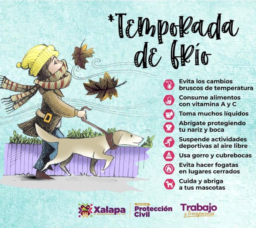 Con valores de entre 5 y 7 grados Xalapa, Ver., 12 Noviembre 2025.- Las bajas temperaturas ocasionadas por el Frente Frío 13 persistirían hasta el próximo viernes, con valores mínimos de entre 5 y 7 grados, por lo que es necesario extremar precauciones. El director de Protección Civil, Enrique Fonseca Martínez, detalló que esto se debe a los efectos combinados del Frente Frío y la … Continúa leyendo Recomendaciones de PC Xalapa por bajas temperaturas de FF 13